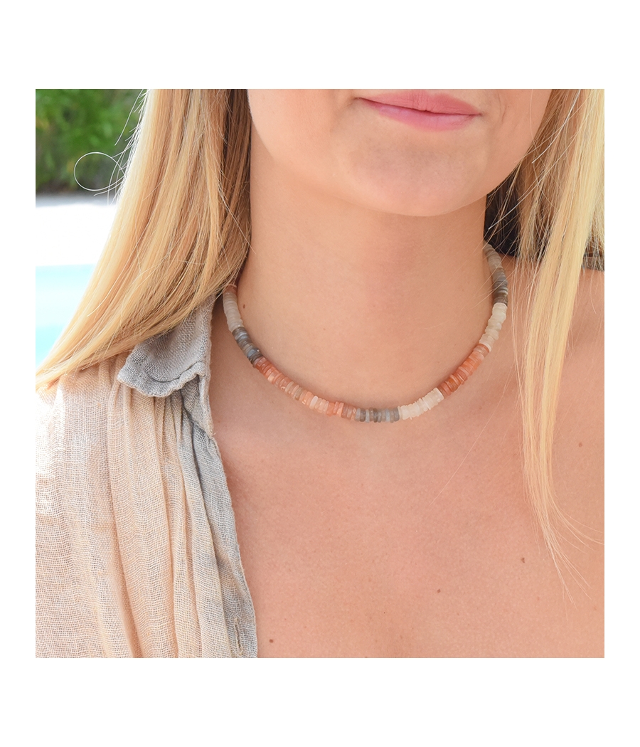 Collier surfer perles heishi dégradé blanc orange gris NEREA