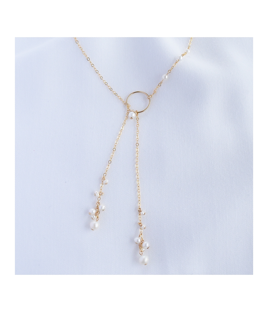 Sautoir cravate avec cercle en plaqué or 3 microns et perles d'eau douce