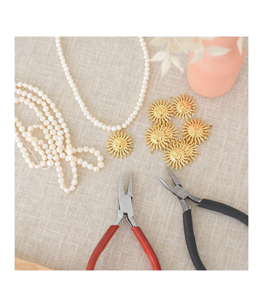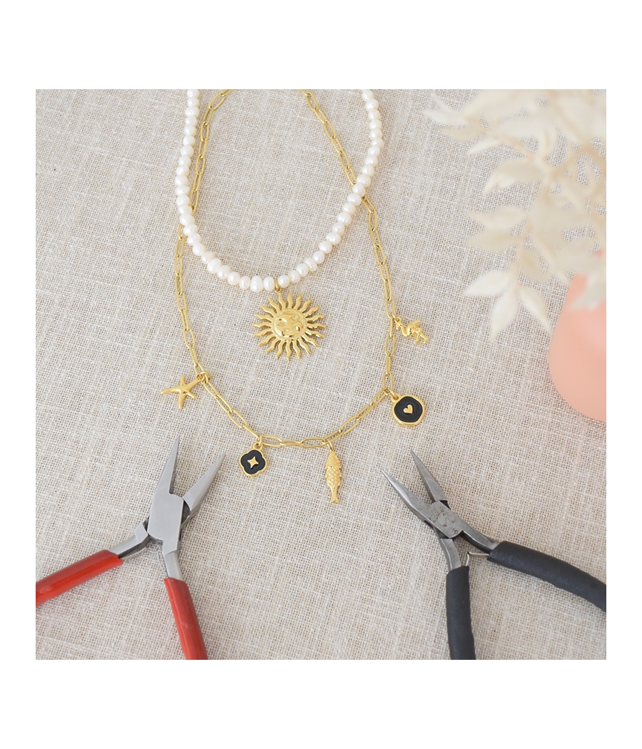 💎 Matériel fourni : perles, chaînes, apprêts, outils