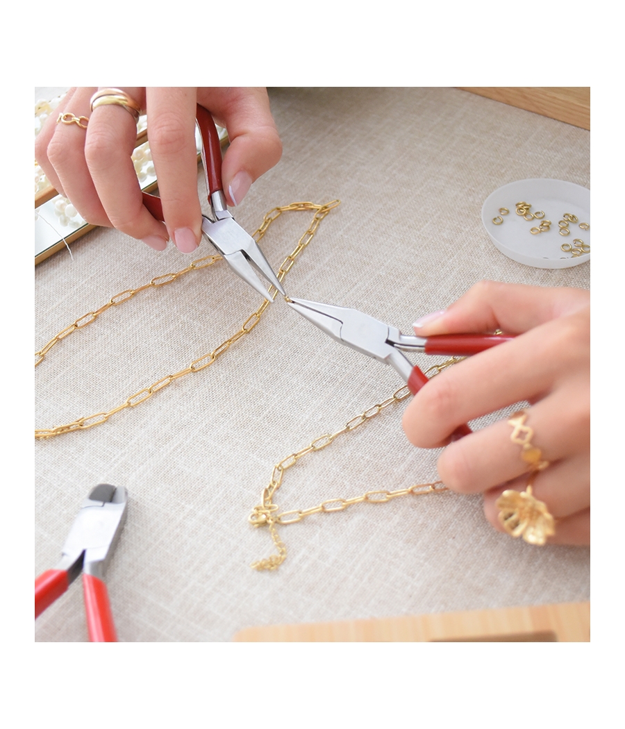 💎 Matériel fourni : perles, chaînes, apprêts, outils