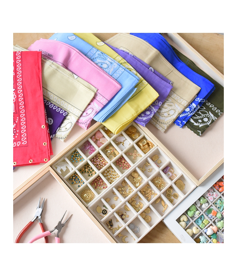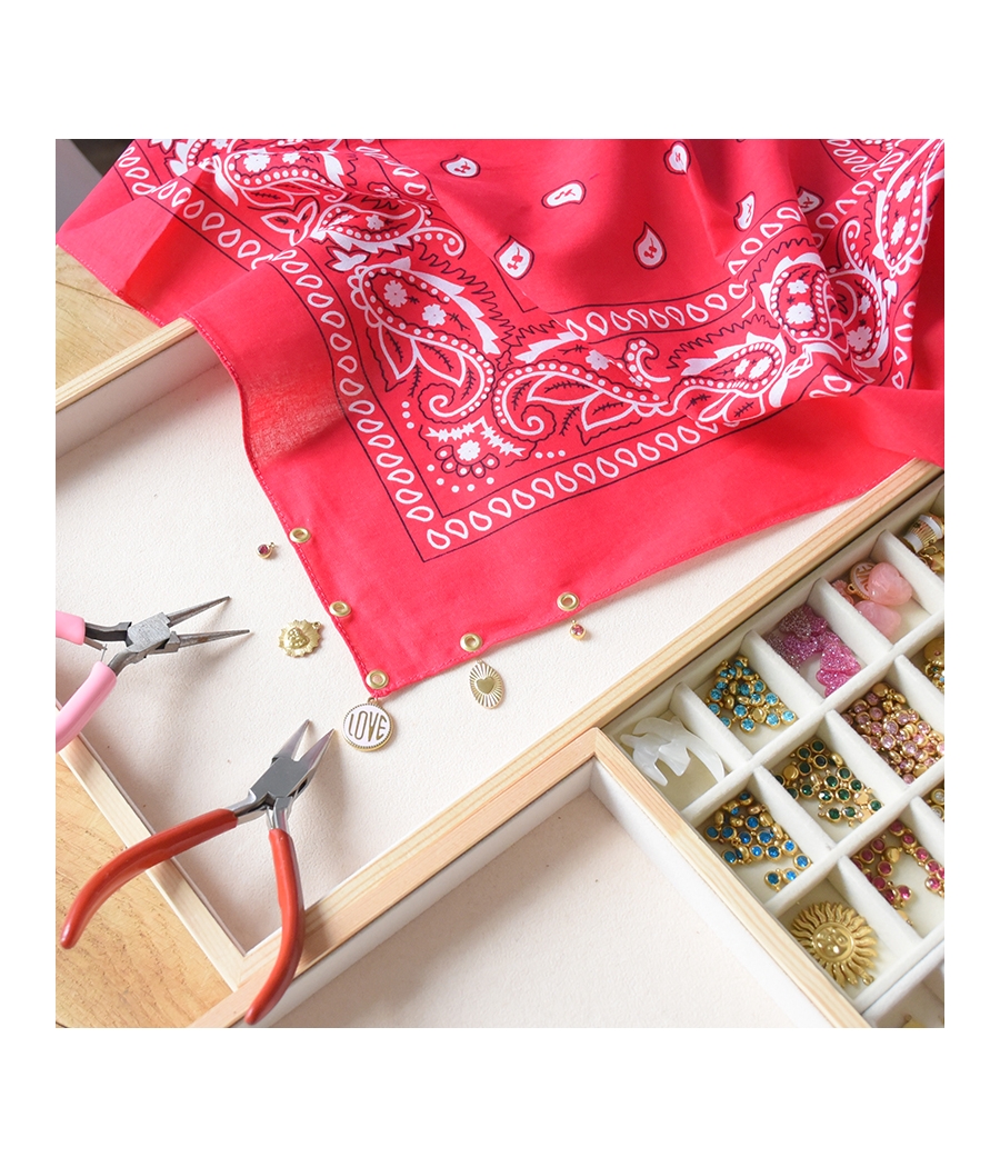 💎 Matériel fourni : perles, chaînes, apprêts, outils
