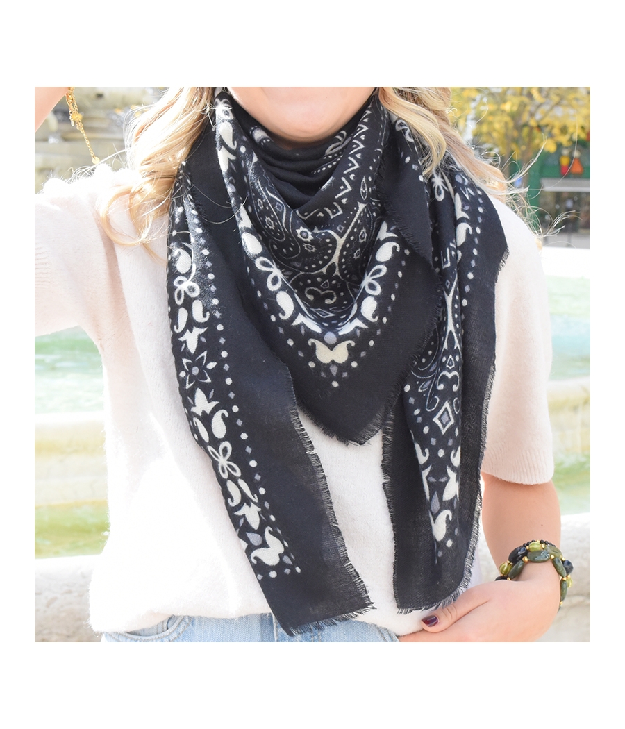 Polyvalent et facile à porter, ce foulard peut se nouer autour du cou pour un look bohème, chic ou décontracté. Ses motifs inspirés du bandana classique sont revisités dans des couleurs modernes et harmonieuses, parfaites pour sublimer votre style en toute occasion.