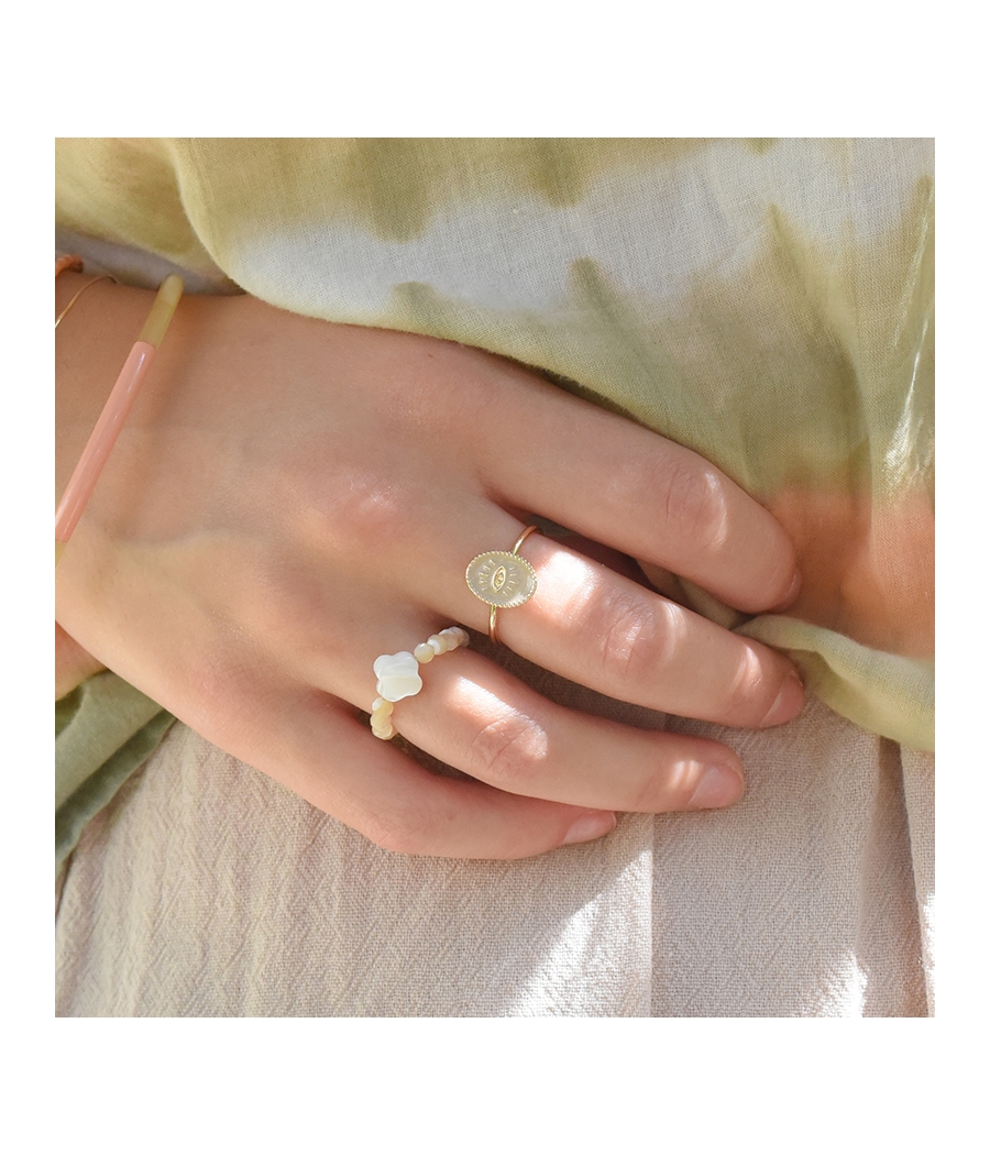 Bague en laiton plaqué or 3 microns et perles de nacre